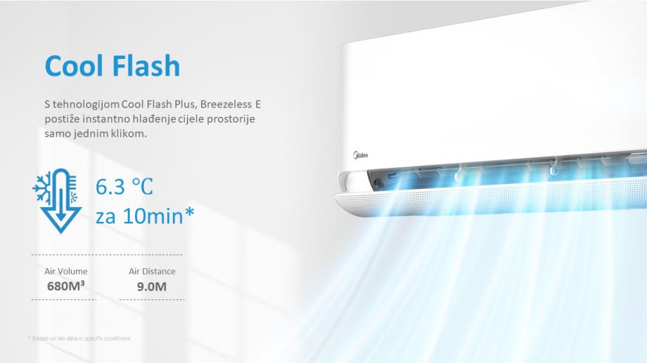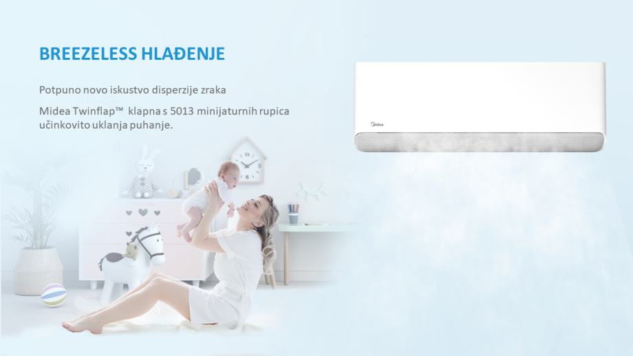 Breezeless E model sada gamu Midea klima uređaja proširuje do razine da u potpunosti zadovoljava najviše standarde i zaokružuje ponudu klima uređaja za potpunu udobnost i kvalitetu hlađenja Vašeg doma.