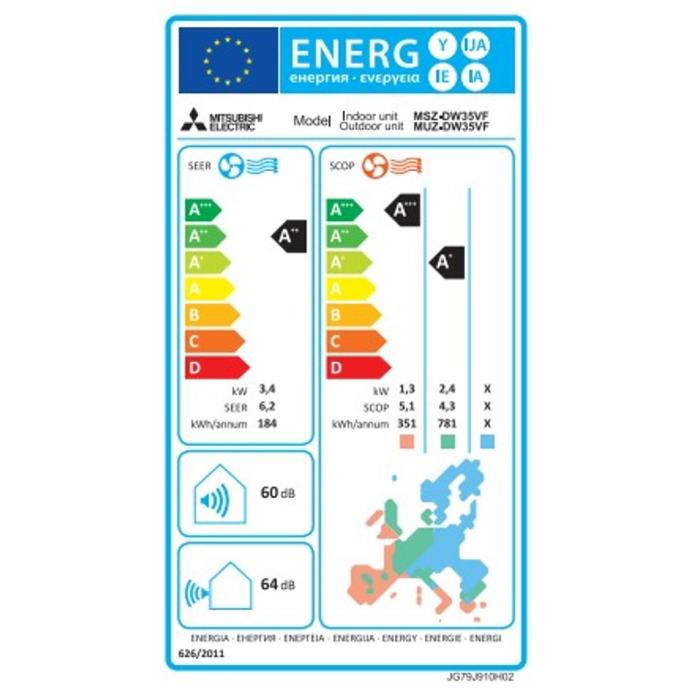 Mitsubishi Electric 3,4 kW MSZ/MUZ-DW35VF 748 € -Besplatna dostava