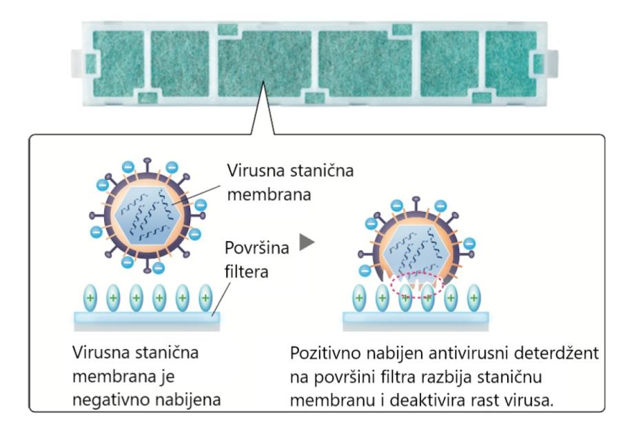V Blocking Filter s antivirusnim učinkom inhibira 99% zalijepljenih virusa i drugih štetnih tvari, poput bakterija, plijesni i alergena.