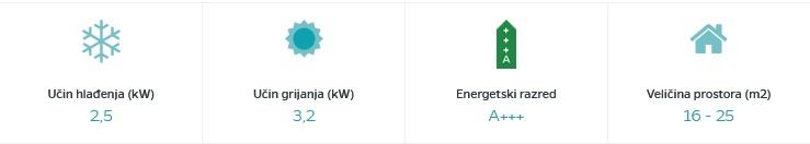 • Raspon rashladnog učina (kW) 1,0 - 3,5