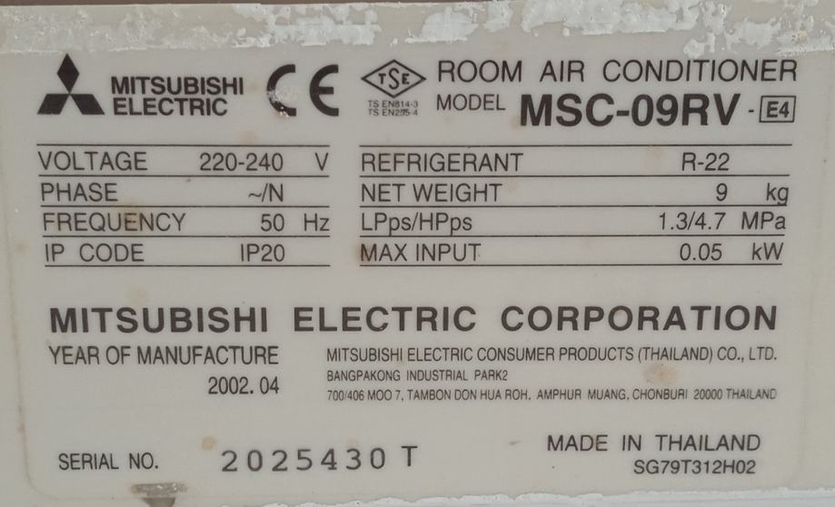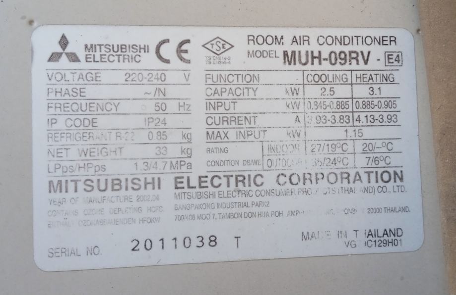 Hlađenje 2.5 KW, grijanje 3.1 KW, plin R-22.