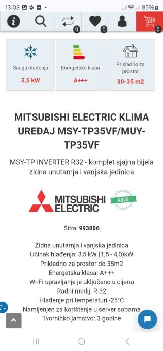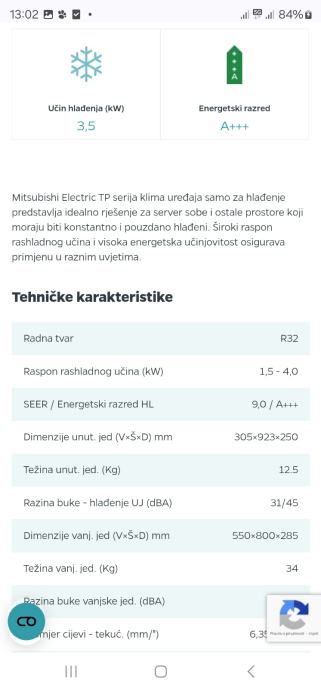 Electric Super Inverter Plus u sebi ima ugrađen WiFi sučelje i nudi opciju ugradnje dodatnog žičanog upravljačkog sučelja koji se prodaje zasebno. Također, koristi novi, ekološki prihvatljiv rashladni medij R32 i upravo zahvaljujući njemu i naprednoj inverterskoj tehnologiji spada u uređaje odlične energetske učinkovitosti razreda A+++. Sa snagom od 3.5 kW pouzdano će rashladiti prostorije do 35 m². Upravljanje uređajem omogućeno je infracrvenim daljinskim upravljačem, a vaša udobnost pomoću brojnih funkcija. Vertikalne i horizontalne lamele automatski se pomiču kako bi osigurale ravnomjerni protok zraka po prostoriji a Econo Cool funkcija prilagođava količinu zraka usmjerenu prema tijelu na temelju temperature izlaznog zraka. Na taj način također se postiže i 20% -tni porast energetske učinkovitosti. Za bezbrižan rad čak i kada niste tu pobrinule su se napredne funkcije: Tjedni timer, “i save”, Automatski restart i Automatska promjena režima rada. One zajedno nude veliku kontrolu klima uređaja kroz automatsko gašenje, paljenje, promjenu zadane temperature i rad po unaprijed određenim postavkama. Na ovaj način ćete i dodatno uštedjeti na potrošnji električne energije. Zahvaljujući filerskom sustavu sa ionima srebra i dodatnim filterom za pročišćivanje i aromatiziranje zraka zaboravite na ustajali zrak, neugodne mirise, prašinu i alergene. Spavajte mirno uz osiguranu kvalitetu zraka i Noćnu postavku koja smanjuje razinu svjetlosti indikatora klima uređaja, isključuje zvučnu signalizaciju i snižava razinu buke rada vanjske jedinice za 3dB. Klima uređaj Mitsubishi Electric Super Inverter Plus 3.5 kW sastoji se od unutarnje jedinice oznake MSZ-AP35VGK, vanjske jedinice MUZ-AP35VG i infracrvenog daljinskog upravljača.