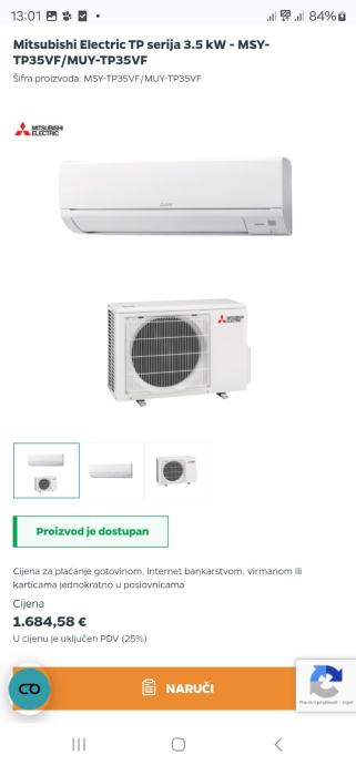 Mitsubishi klima uređaj MSY-TP35VF, gotovo novi, korišten kroz 2 sezone na moru.