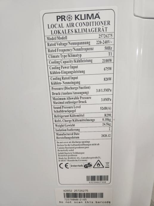 Mobilni klima uređaj, njemačke proizvodnje, malo korišten i radi kao nov. Snaga hlađenja 2100 W, potrošnja 675W.