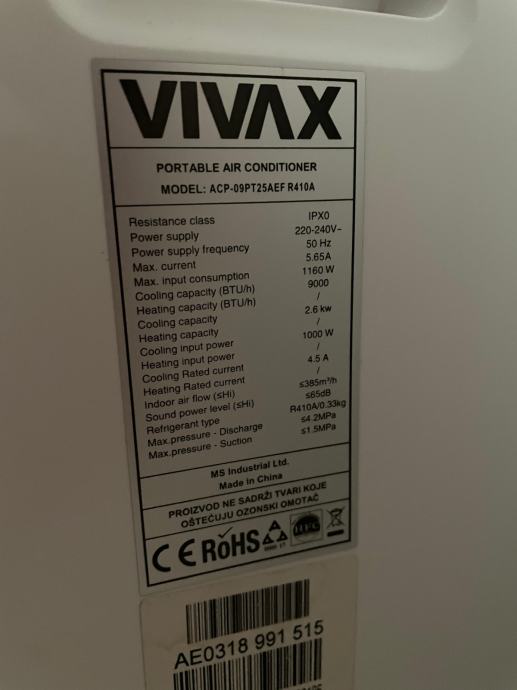 VIVAX COOL, prijenosni klima uređaji, ACP-09PT25AEF R410A