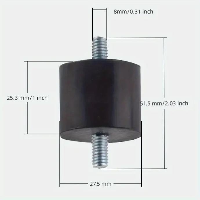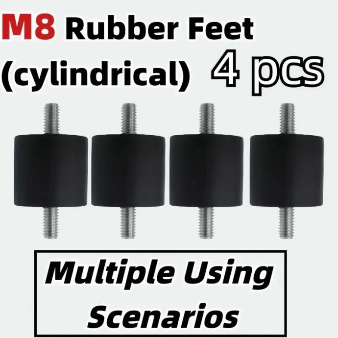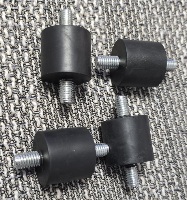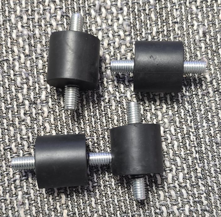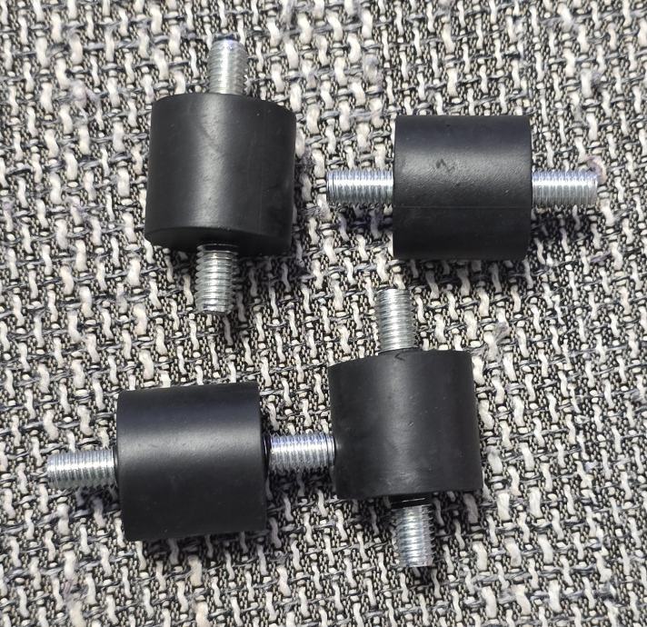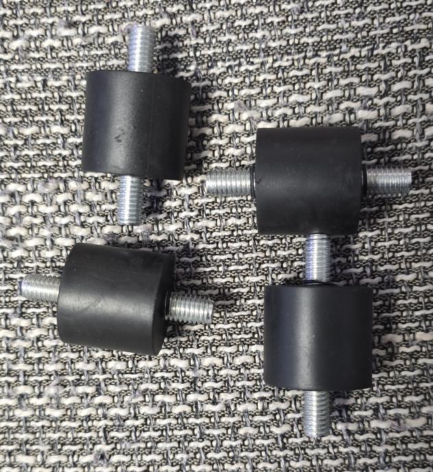 Prodajem set od 4 komada cilindričnih gumenih podloga s M8 navojem. Namijenjene su za montažu klima uređaja, velikih električnih uređaja i strojeva.