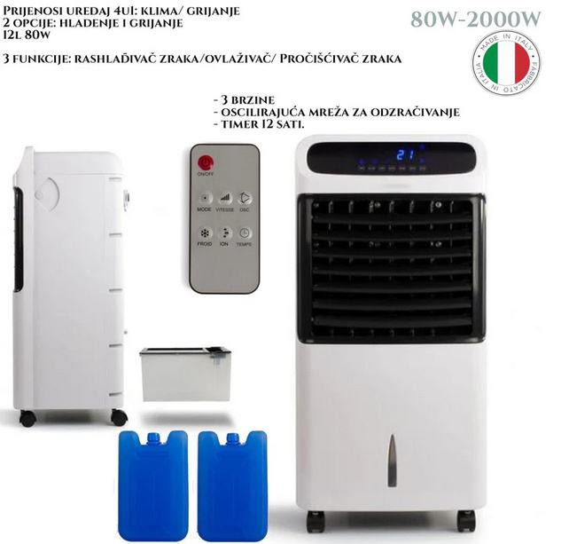 Ima 3 funkcije: rashlađivač zraka, ovlaživač, Pročišćivač zraka.