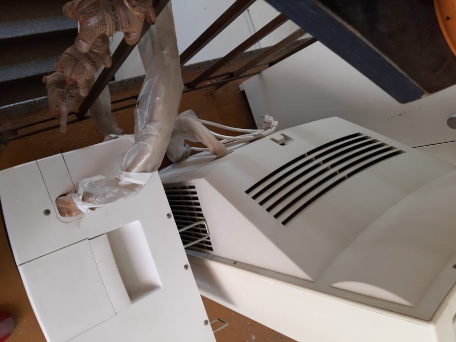 Dimenzije unutarnje jedinice: dužina 45 cm X širina 35cm X visina 83cm. Duljina cijevi između vanjske i unutarnje jedinice cca 1.8m.