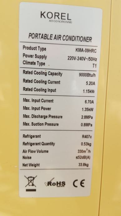 Korel prijenosna klima 1.35kw
