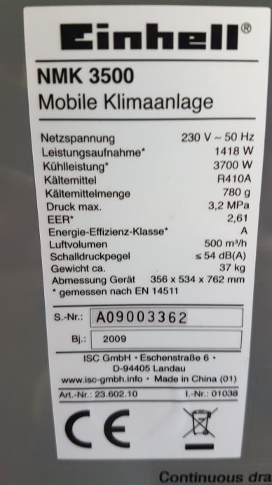 Prodajem prijenosnu mobilnu klimu Einhell NMK 3500.
