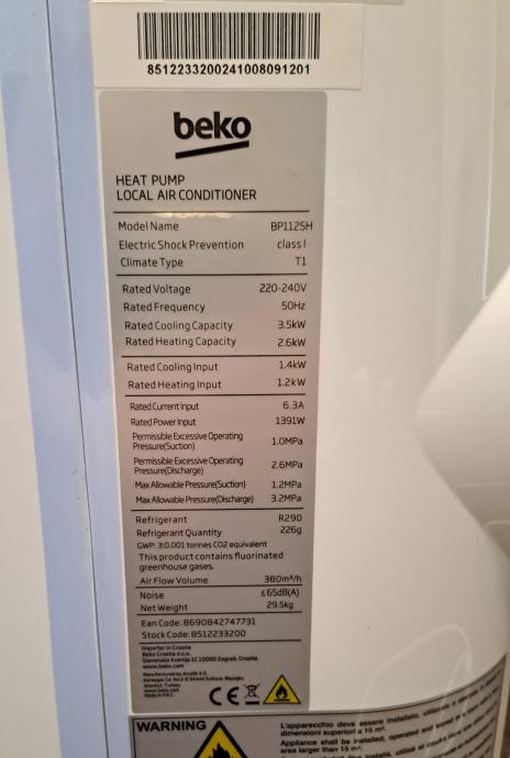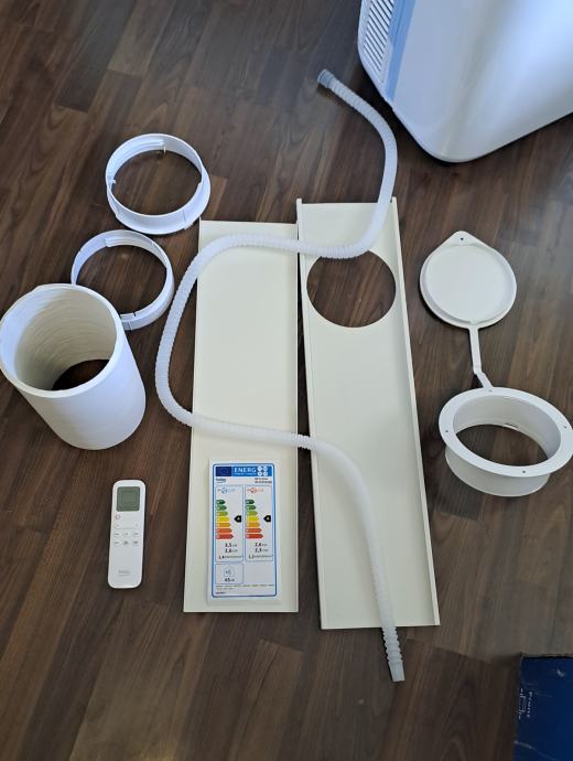 Prodajem prijenosnu klimu/grijalicu, snaga hlađenja je 3,5 kW, a grijanja 2,6 kW. Uređaj ima LED display, daljinski upravljač, mogućnost povezivanja na HomeDirect preko mobitela te ostale dodatne dijelove vidljive na slikama. Uređaj sve ukupno radio 1,5 h. Kupljen po cijeni od 389,99 €. Prodajem zbog kupnje ugradbene klime.