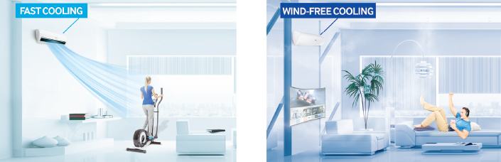 Nježno i ravnomjerno raspršuje svježi zrak kroz tisuće mikro-rupa, te stvara uvjet „mirnog zraka". Omogućuje ljudima da udobno žive, rade i opuštaju se, t ne doživljavaju neugodne hladne propuhe. Samsung 2020. godine predstavlja potpuno novo Raspon bez vjetra u moderniziranom dizajnu, koji sadrži nove inteligentne tehnologije za poboljšana udobnost u zatvorenom prostoru i poboljšana energetska efikasnost.