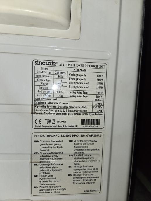 Specifikacije navedene na fotografiji.