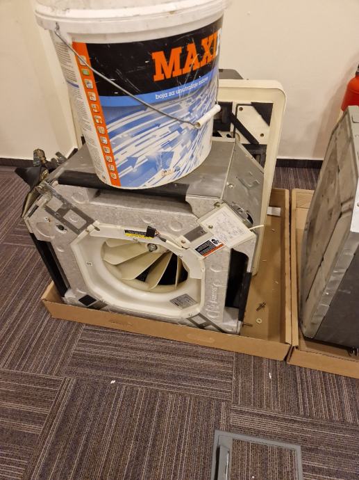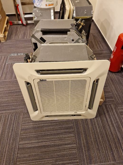 Kazeta za ugradnju u strop, za grijanje ili hlađenje vodom, snage 4 kW. Može se spojiti na centralno grijanje ili dizalicu topline za grijanje i hlađenje. Zidni termostat + daljinski upravljač. Ima ih više komada. Cijena 100€/kom