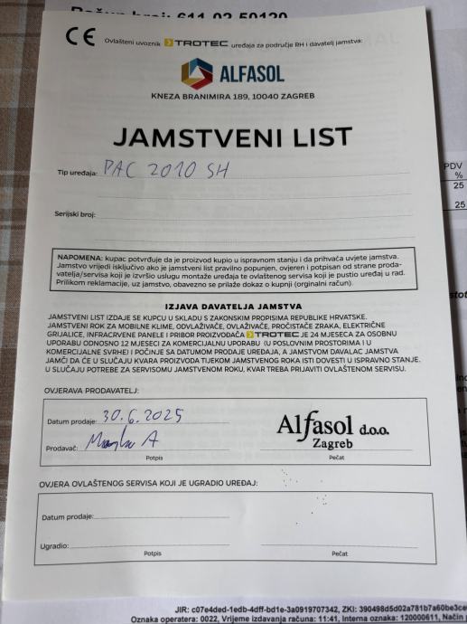 TROTEC PAC 2010 SH * jamstvo 20 mjeseci * + GRATIS prozorska brtva