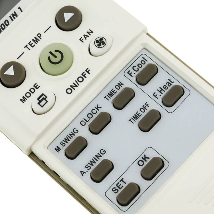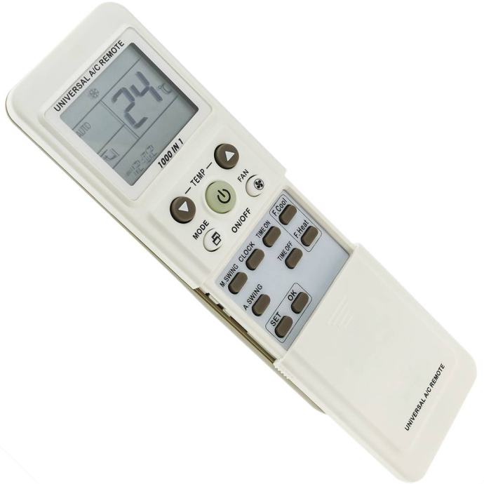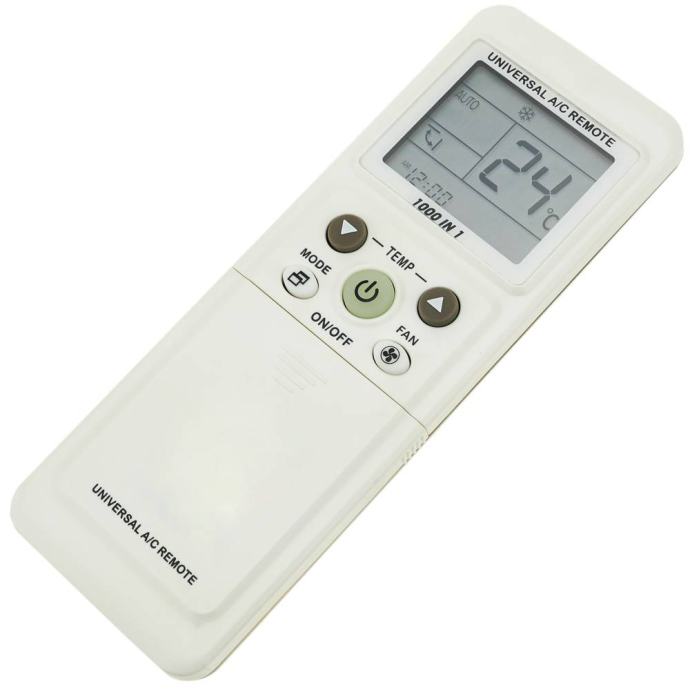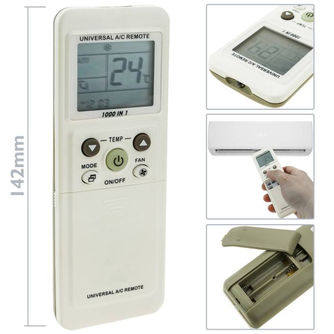 Univerzalni infracrveni daljinski upravljač idealan za zamjenu oštećenih ili izgubljenih daljinskih upravljača. Posebno dizajniran za klima uređaje i strojeve za grijanje s infracrvenim prijemnikom. Također korisno za koncentriranje raznih daljinskih upravljača u jedan. Isporučuje se s unaprijed definiranim skupovima naredbi i kompatibilan je s većinom proizvođača na tržištu, iako je također moguće programirati svoj skup naredbi tako da odgovara vašoj opremi. Ima LCD tražilo koje pokazuje status, funkcije i druge detalje daljinskog upravljača. Radi s dvije AAA baterije (ne isporučuju se). Veličina 51 x 142 x 21 mm. Kompatibilan s Carrier, Daikin, Electrolux, Fujitsu, Haier, Hitachi, Mitsubishi, Panasonic, Sanyo, Sharp, Toshiba, Whirpol itd.