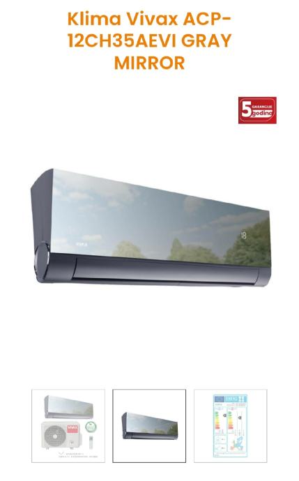 Prodajem Vivax inverter klima uređaj ACP-12CH35AEVI GRAY MIRROR R32 korišten 2 godine (samo za grijanje). Tvornički napunjen uredan i čist. Uz nj dajem wi-fi modul za upravljanje preko mobitela.