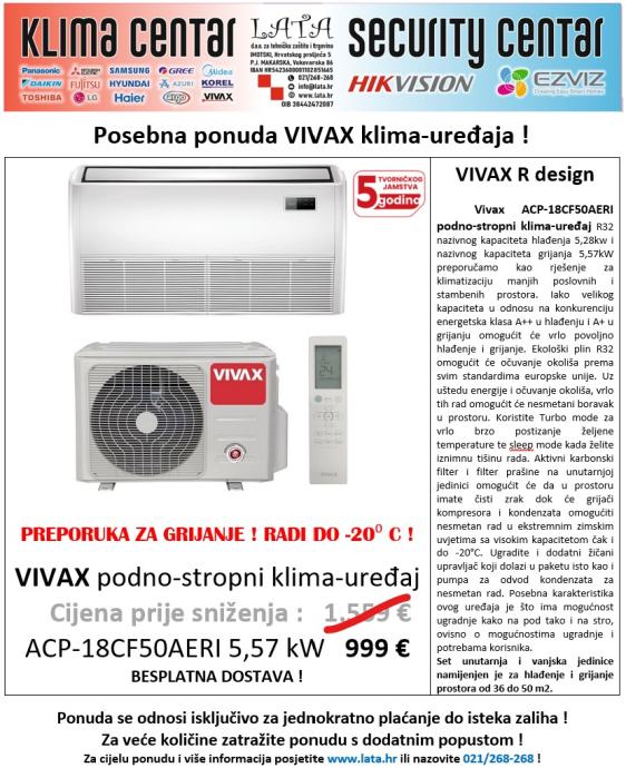 Vivax ACP-18CF50AERI podno-stropni klima-uređaj, besplatna dostava