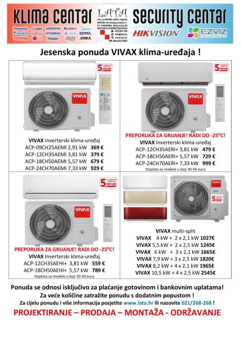Sve dodatne informacije o ostaloj ponudi VIVAX klimatizacije te ostalih proizvođača klimatizacije Mitsubishi, Panasonic, TOSHIBA, Fujitsu, ARGO, LG, SAMSUNG, HYUNDAI, Midea, Korel, VIVAX, ... kontaktirajte nas.