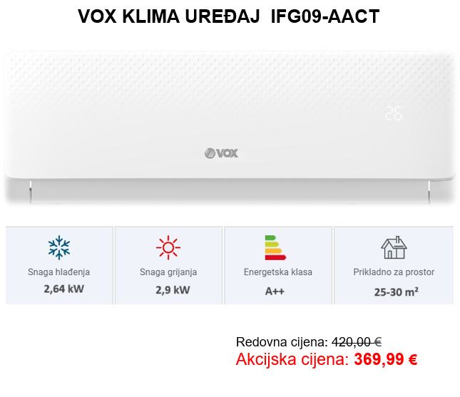 Zidni mono split klima uređaj, kapacitet hlađenja/grijanja: 2,64 kW/2.9 kW, plin R32, energetski razred hlađenja/grijanja: A++/A+, SEER/SCOP:6.10/4.0, razina buke pri standardnim uvjetima (UJ/VJ) 53/60 dB, protok zraka: 600m³/h, grijanje od -15°C/+30°C, hlađenje od +16°C/+49°C, Funcionalnost: 8°C konstantna temperatura, anti bakterijski filter, filter sa aktivnim ugljenom, WIFI ready, I FEEL funkcija, auto cleaning, auto restart, LED display, DEEP sleep, dimenzije (UJ): 750x285x200mm, dimenzije (VJ): 650x456x233mm, neto težina (UJ)/(VJ): 8.5kg/18kg • Jamstvo 60 mjeseci