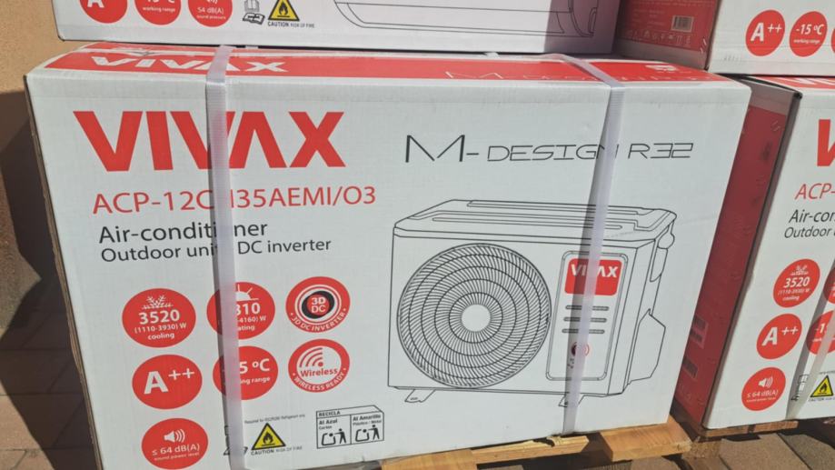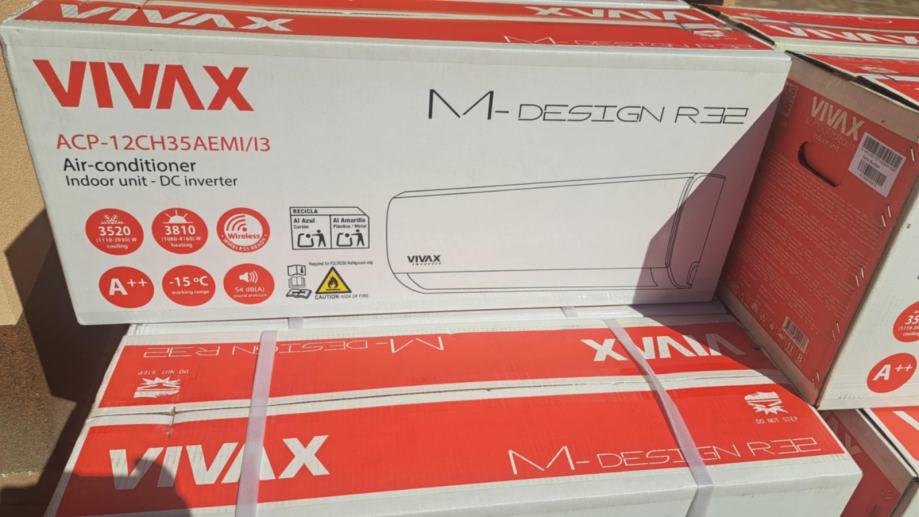 VIVAX M design klima ACP-12CH35AEMIs R32 ima nominalni kapacitet grijanja 3,81 kW, a nominalni kapacitet hlađenja 3,52 kW. Ovaj model predstavlja dokaz da VIVAX klima uređaji i u najnižem cjenovnom razredu nude puno više od konkurencije. Posebna 3D inverter tehnologija pruža najbolje performanse, a istovremeno omogućuje znatnu uštedu energije. Bio filter je sastavljen od posebnog biološkog enzimskog i eko filtera koji ne propušta prašinu, neutralizira i uništava bakterije, gljivice i mikrobe, a filter prašine pomaže u zaustavljanju čestica prašine u uređaju čime se pospješuje kvaliteta zraka u prostoru. Unutarnja jedinica ima funkciju samočišćenja, nastavlja s radom kako bi osušila i očistila preostali kondenzat.