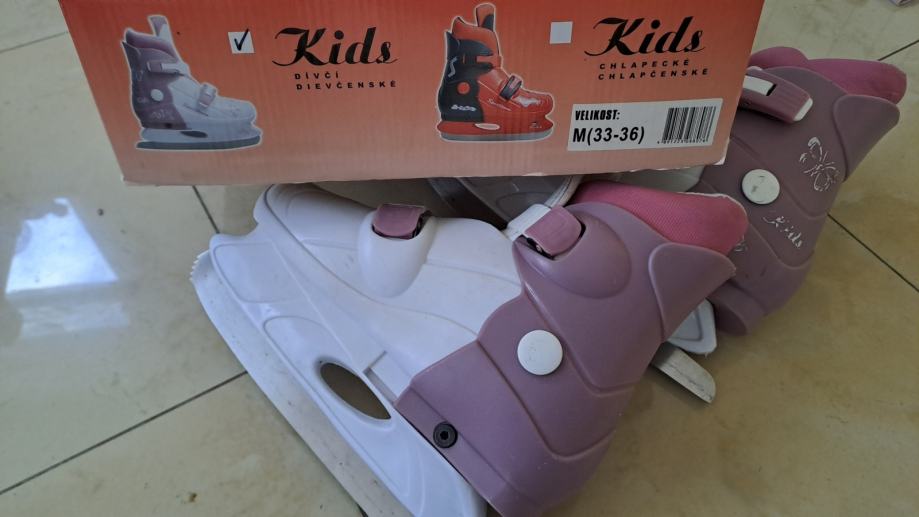 Dječje klizaljke, malo korištene, u izvrsnom stanju. Veličina podesiva od 33 do 36.