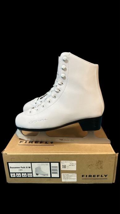 Firefly bijele klizaljke vel 37, novo u original ambalaži. Klizaljke su korištene 2x i bezveze mi stoje doma. Jako ugodne, iznutra podstavljene sa mucastim materijalom, realna veličina, unutarnje gazište 23 cm.