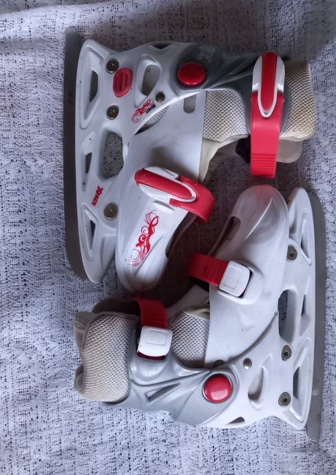 Prodajem potpuno nove dječje klizaljke, idealne za male zaljubljenike zimskih sportova. Klizaljke dolaze u bijelo-crvenoj kombinaciji s podesivim kopčama za sigurno i udobno pristajanje. Savršene za prvi dodir s ledom ili za djecu koja žele unaprijediti svoje klizačke vještine.