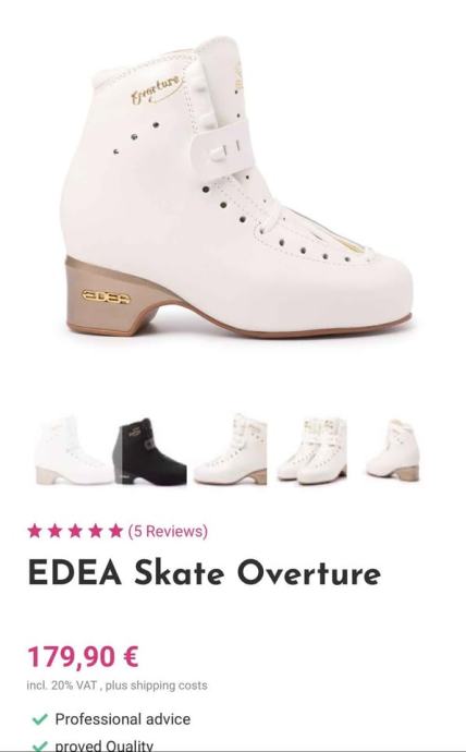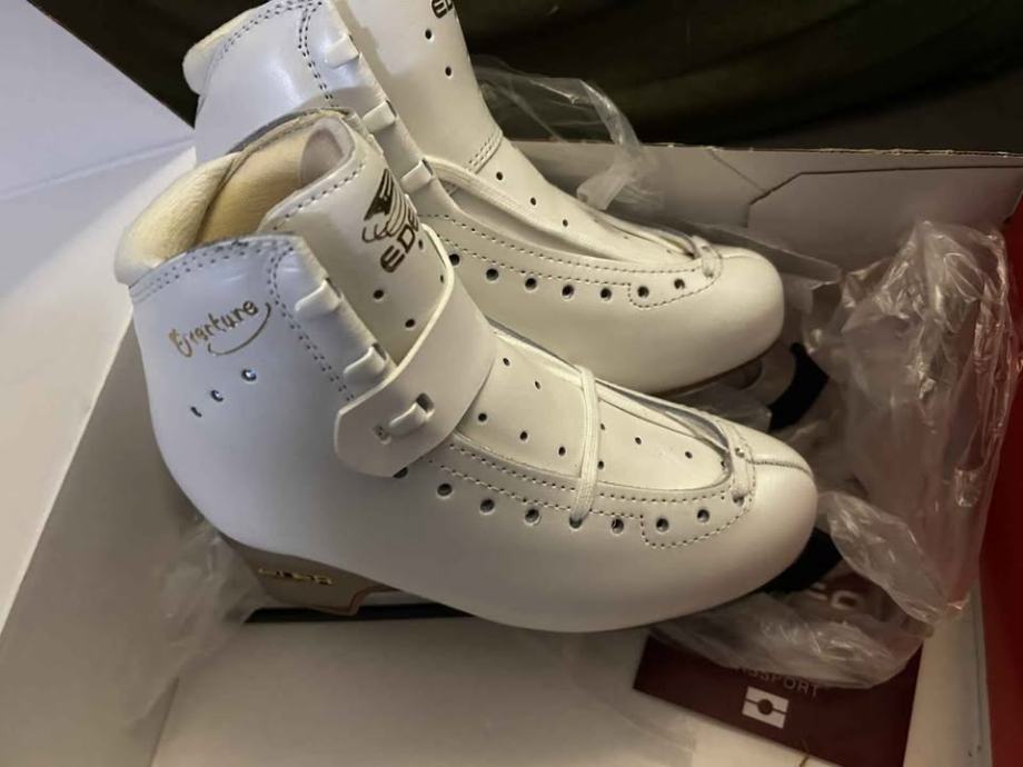 Prodajem potpuno nove klizaljke Edea za umjetničko klizanje. Kao što se vidi na slikama nisu nikada nošene jer su mojoj kćeri premale. Veličina klizaljki je 225C.