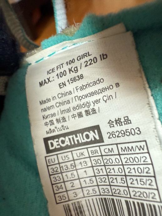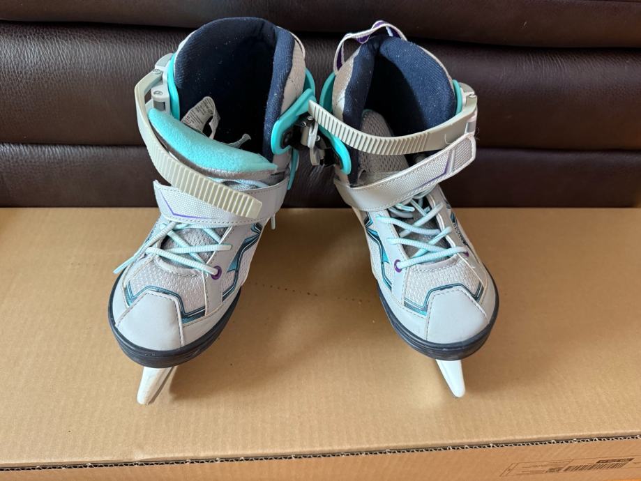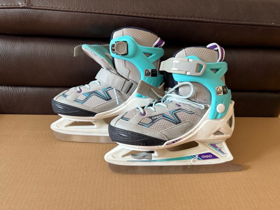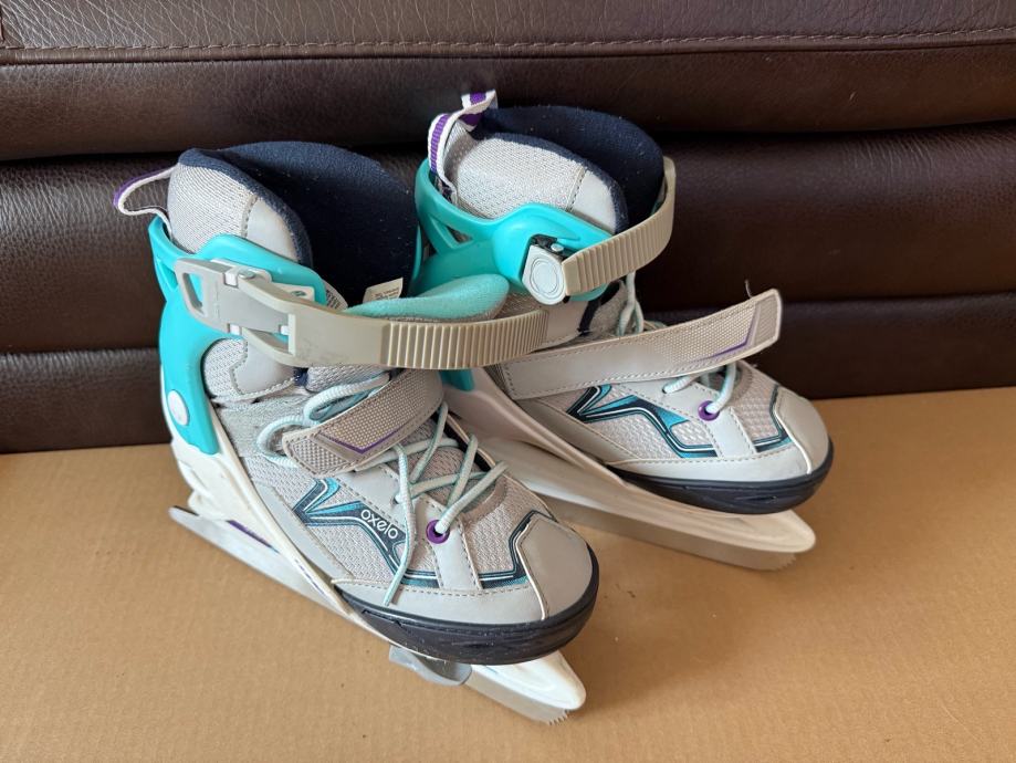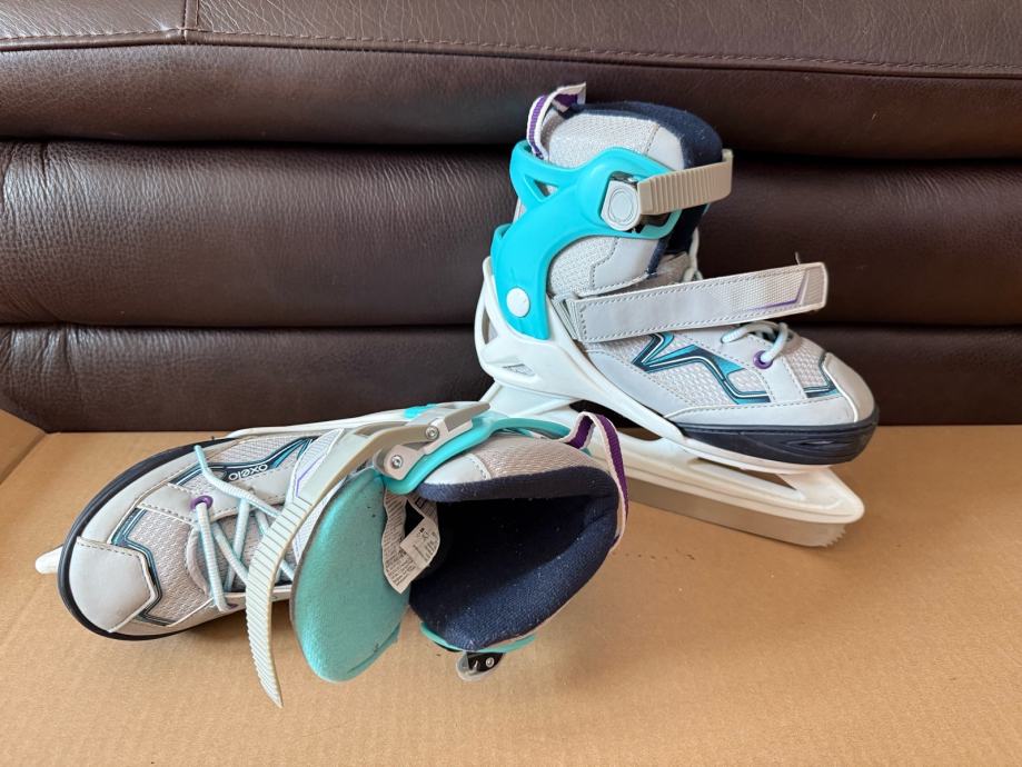 Prodajem rabljene klizaljke OXELO FIT100 u sivoj i tirkiznoj boji, podesive veličine od 32 do 35. Idealne su za djecu koja uče klizati, a imaju praktičan sustav za prilagodbu veličine kako noga raste.