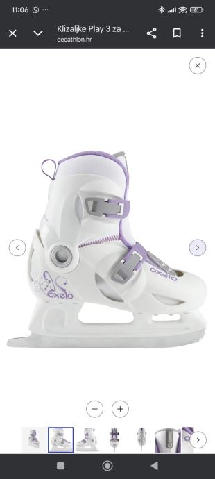 Prodajem rabljene Oxelo dječje klizaljke veličine 32-34. Klizaljke su bijelo-ljubičaste s podesivim kopčama za sigurno pristajanje. Idealne su za mlade početnike koji žele naučiti klizati ili za djecu koja brzo rastu.