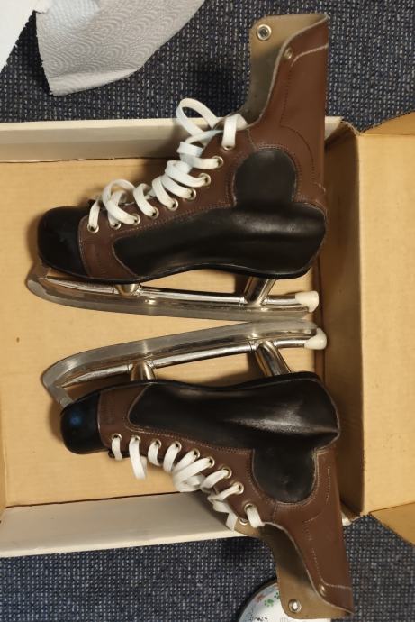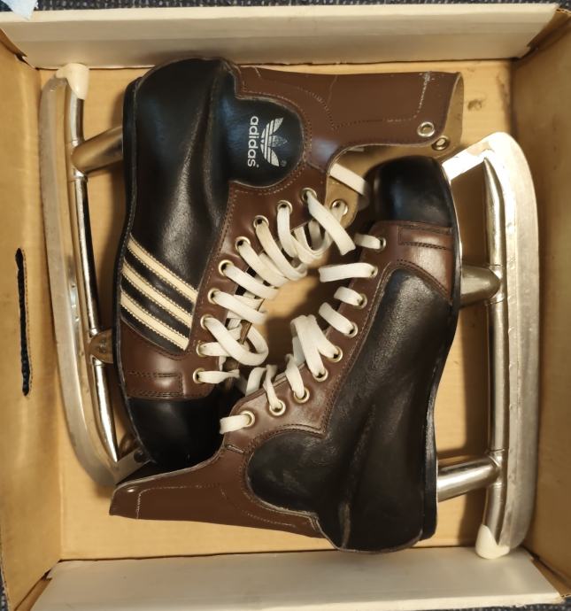 Prodajem vrlo malo rabljene vintage Adidas muške klizaljke u originalnoj kutiji. Klizaljke su smeđe boje s prepoznatljivim Adidas prugama i bijelim vezicama. Unatoč korištenju, klizaljke su očuvane i spremne za novu sezonu klizanja. Veličina 42.