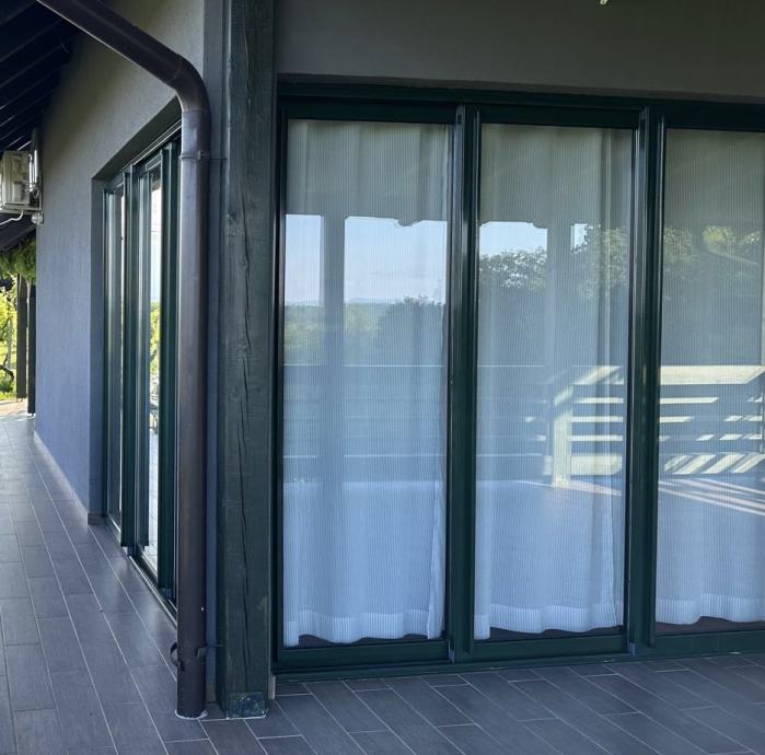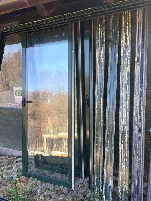 Prodajemo rabljenu kliznu staklenu stijenu, 2 KOM, PVC, tamnozelena boja, demontirano.