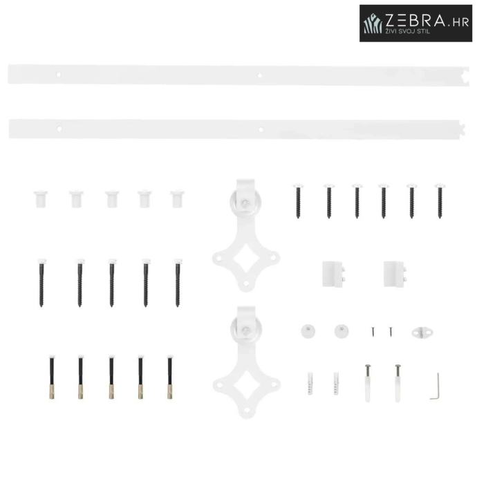 Uključeni Svi Dijelovi Sve što trebaš je tu, uključujući klizne tračnice, blokade vrata, valjke, stezaljke, vodilicu za pod i blokade protiv skakanja. Ovaj komplet čini instalaciju super jednostavnom, poboljšavajući funkcionalnost vrata.