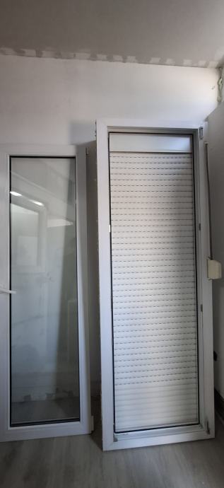 PVC Salamander staklena vrata/stijena sa roletom, dimenzije okvira 77 x 217 cm.