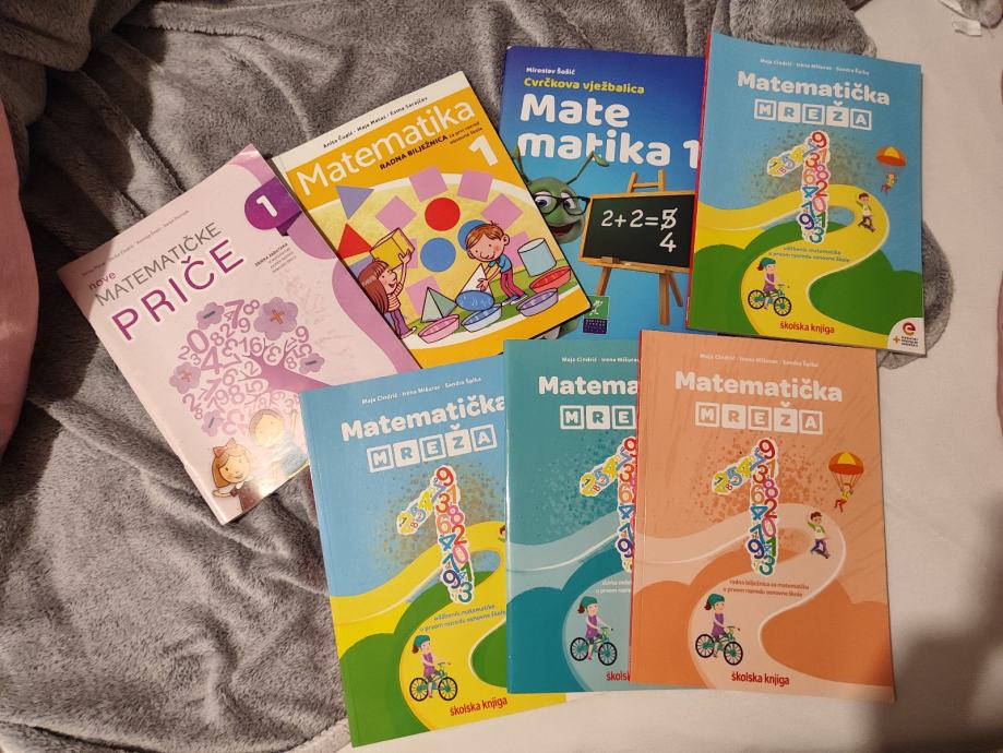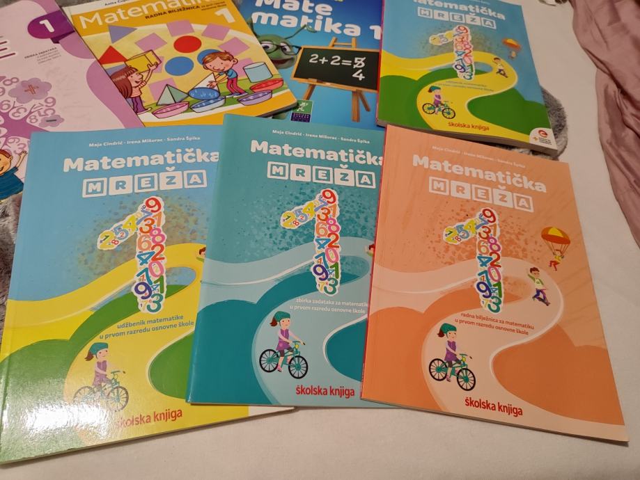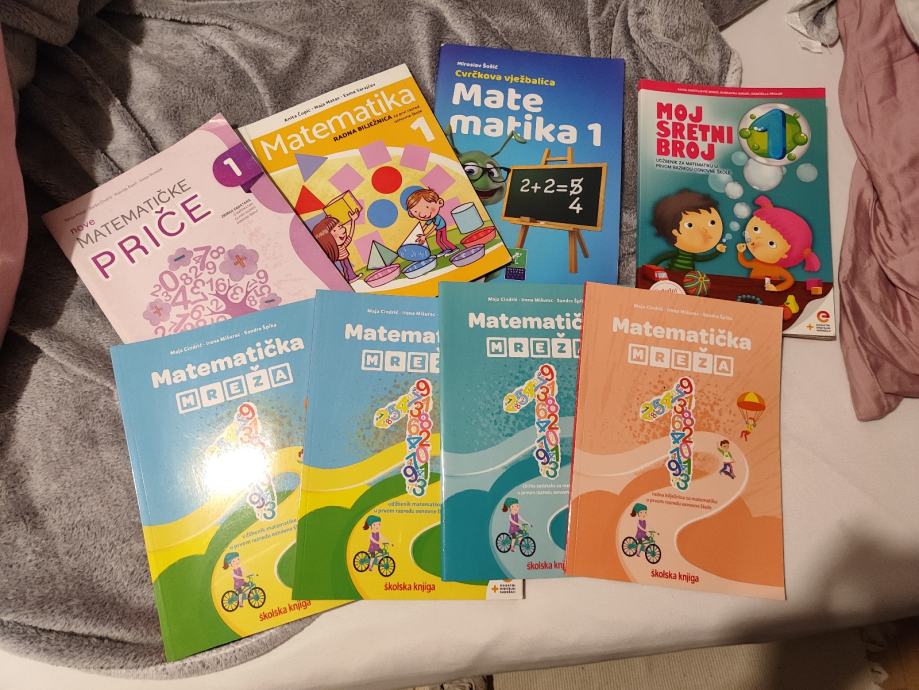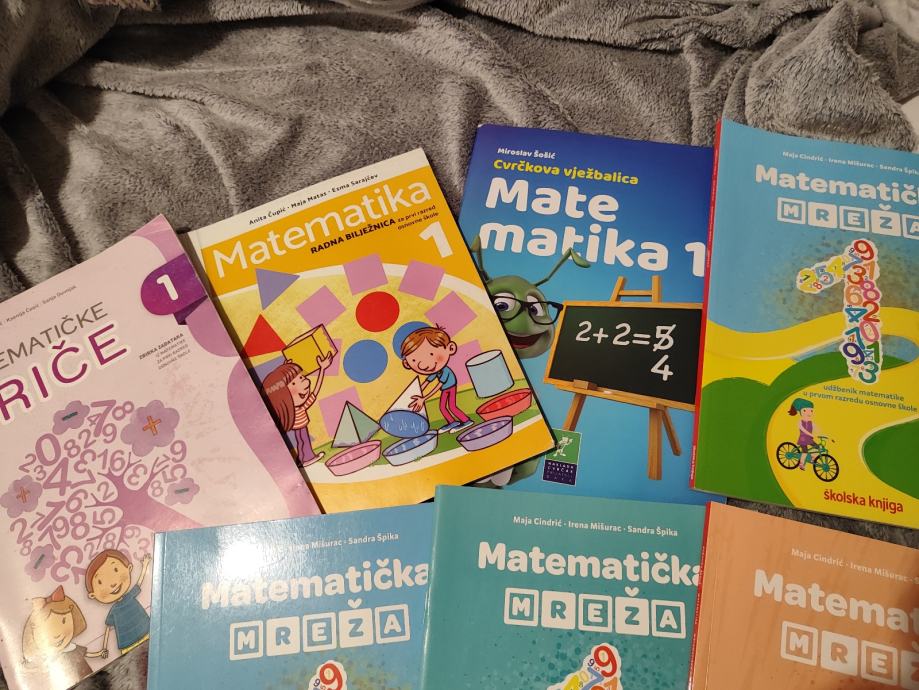 Udžbenici i rasne bilježnice te zbirke iz matematike i ostalih predmeta HJ,GK i PID.Nije sve na slici.