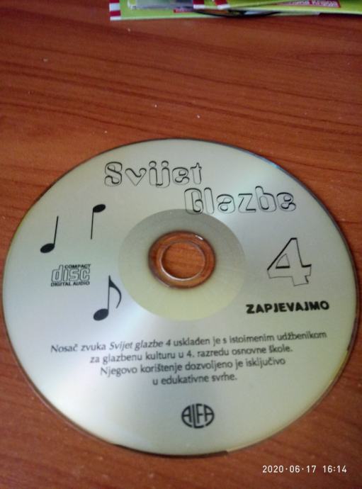 Prodajem CD Svijet glazbe 4 ,zapjevajmo za 4.r. osnovne škole ,Alfa