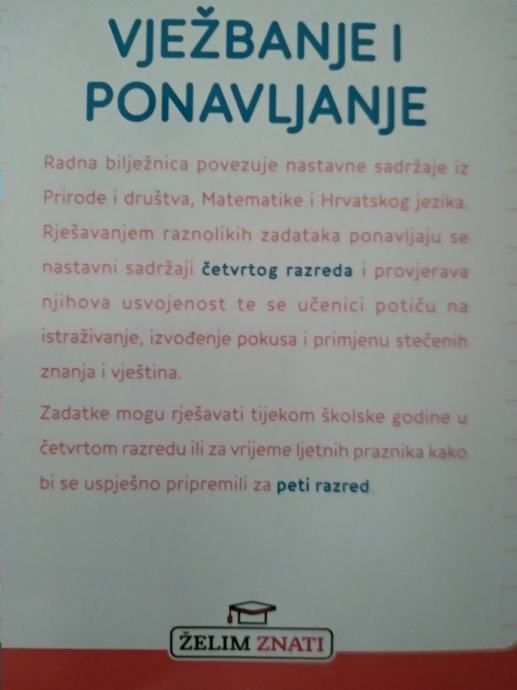 ŽELIM ZNATI 4 - radna bilježnica za vježbanje i ponavljanje nastavnih sadržaja 4. razreda osnovne škole - - PRIPRAVE ZA POČETNE; INICIJALNE ISPITE U PETOM RAZREDU - objedinjuju nastavne predmete PID, HJ, MATEMATIKA