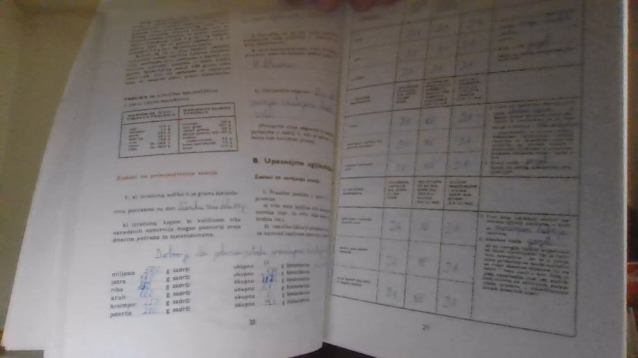 KORICE IMAJU MRLJE, MANJA OŠTEĆENJA I DVA NATPISA OBIČNOM OLOVKOM, POTPIS BIVŠEG VLASNIKA KEMIJSKOM OLOVKOM, SVE VJEŽBE UNUTAR UDŽBENIKA SU ISPUNJENE KEMIJSKOM OLOVKOM