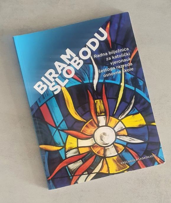 Radna bilježnica iz Vjeronauka Biram slobodu, očuvana, malo ispunjena (olovkom).