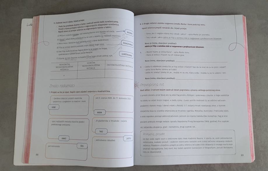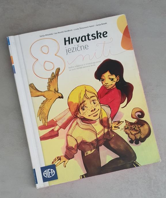 Radna bilježnica Hrvatske jezične niti 8, ALFA, autori: Miloloža, Randić-đorđević, Nakić, Bosak. Radna očuvana, djelomično ispunjena olovkom (primjer na slici).