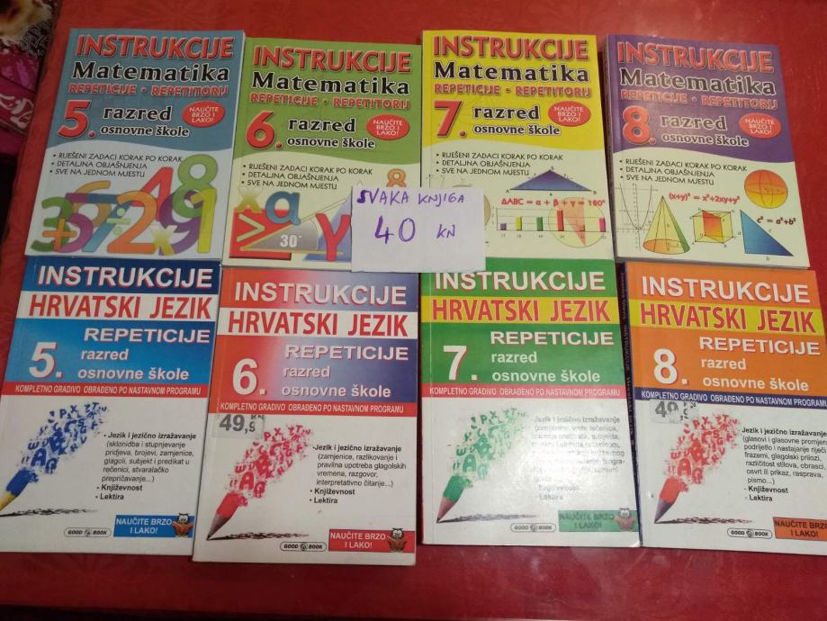 INSTRUKCIJE (REPETICIJE) iz MATEMATIKE za 5., 6. 7. i 8. razred – knjige su super pomoć u učenju; cjelokupno gradivo određenog razreda je objašnjeno vrlo jednostavno s puno primjera; svi zadaci imaju rješenja – objašnjeno detaljno korak po korak
