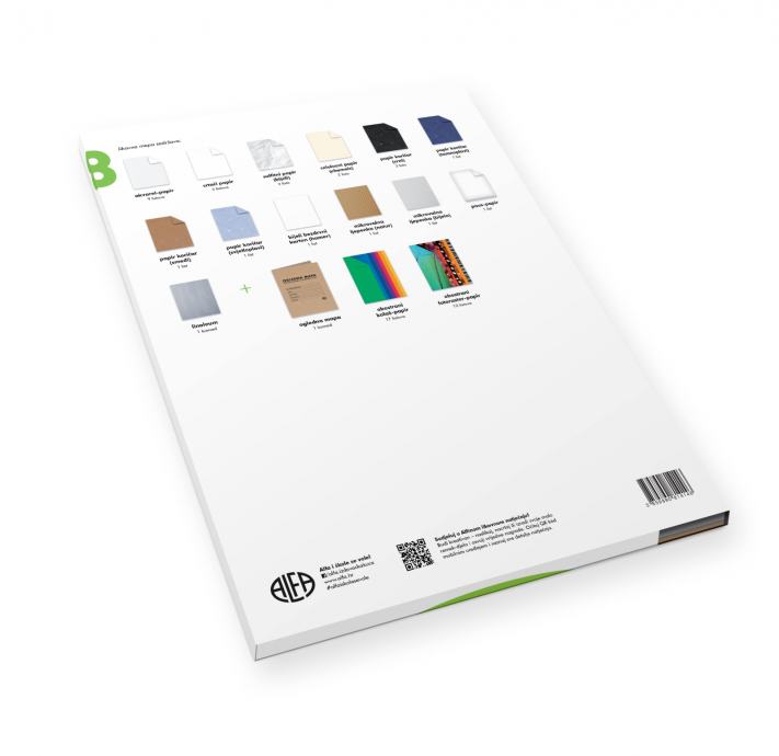 "LIKOVNI SAT 8" - Likovna mapa s kolažom "ALFA" za 8. razred O.Š. Format: 29 x 40,5 cm.