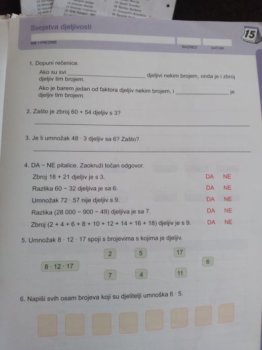 Radni listovi iz Matematike za 5 raz. (6,38 eu)