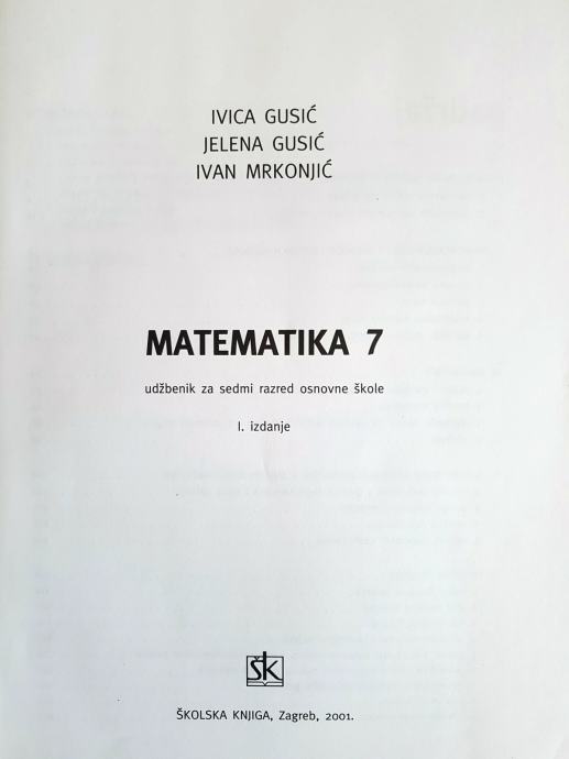 Prodajem udžbenik MATEMATIKA 7 - GUSIĆ, MRKONJIĆ za 7. razred u odličnom stanju razred u odličnom stanju. šk 2003.