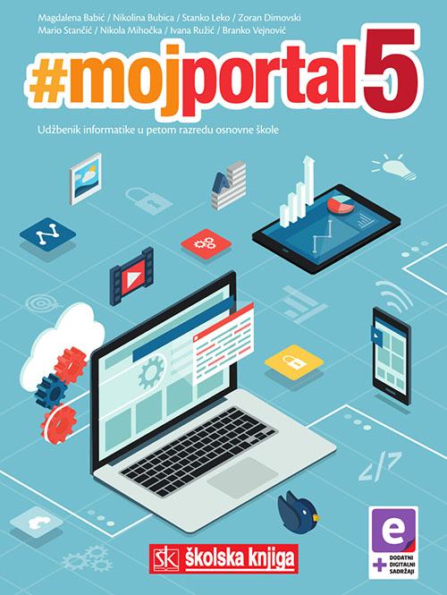 "MOJ PORTAL 5" - Udžbenik informatike za 5. razred O.Š. + DVD + pvc omot. Autori: Magdalena Babić, Mario Stančić, Branko Vejnović.