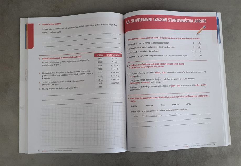 Radna bilježnica Moja zemlja 4, ALFA, autori: Kožul, Krpes, Samardžić. Radna očuvana, djelomično ispunjena olovkom (primjer na slici).