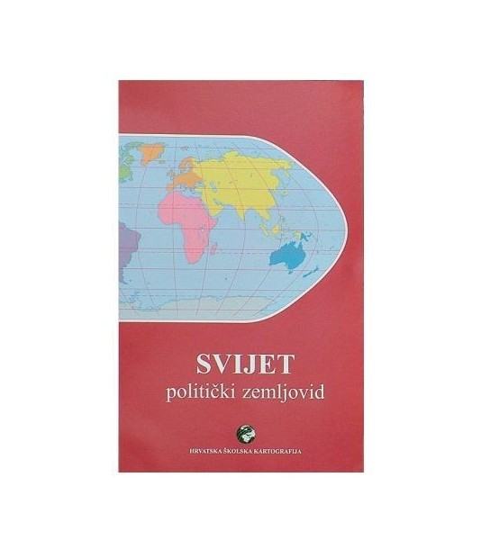 Preklopna politička karta svijeta. Karta je u mjerilu 1:45.000.000. Izrađena je na papiru, te sadrži zastave svih zemalja na svijetu.
