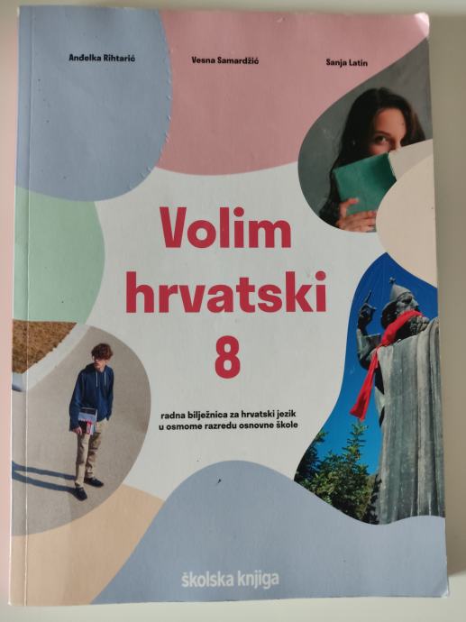 VOLIM HRVATSKI 8 - radna bilježnica za hrvatski jezik u osmome razredu osnovne škole. Djelomično riješena. Sve je lagano pisano olovkom.