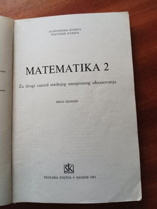 A. Kurepa, S. Kurepa: MATEMATIKA 2 - za drugi razred srednjeg usmjerenog obrazovanja - Školska knjiga Zagreb 1985.